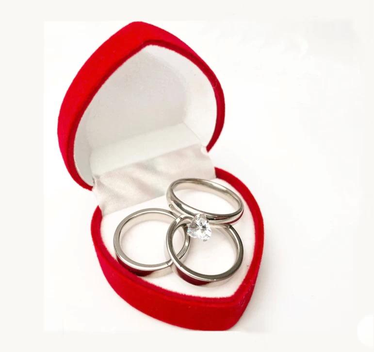 Kit De Aliança + Anel Solitário + Caixa Veludo. O kit vai com 2 pares de aliança de aço inox, 1 anel solitário de aço inoxidável e caixa veludo